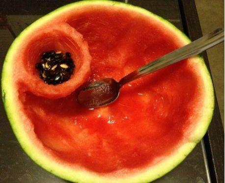 2. 形式新颖:他使用勺子吃瓜的方式,让人眼前一亮,具有很强的趣味性。
